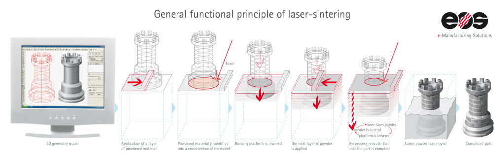 Just like it’s possible for a computer to recreate a picture by taking a digital snapshot of it – basically recording pixel by pixel what is the color of the pixel – then printing it out pixel by pixel, similarly it can recreate an object by taking a digital snapshot of it in 3-D: pixel by pixel, for each layer, layer by layer, then printing it out pixel by pixel, layer by layer. The first printer would use ink and print on paper; the second printer would use a special compound that when heated sticks (thermoplastic or metal wire), so that the material in each layer would be combined with the material in the layers above and below. This process is also referred to as ‘additive manufacturing’ or ‘fused deposition modeling’.